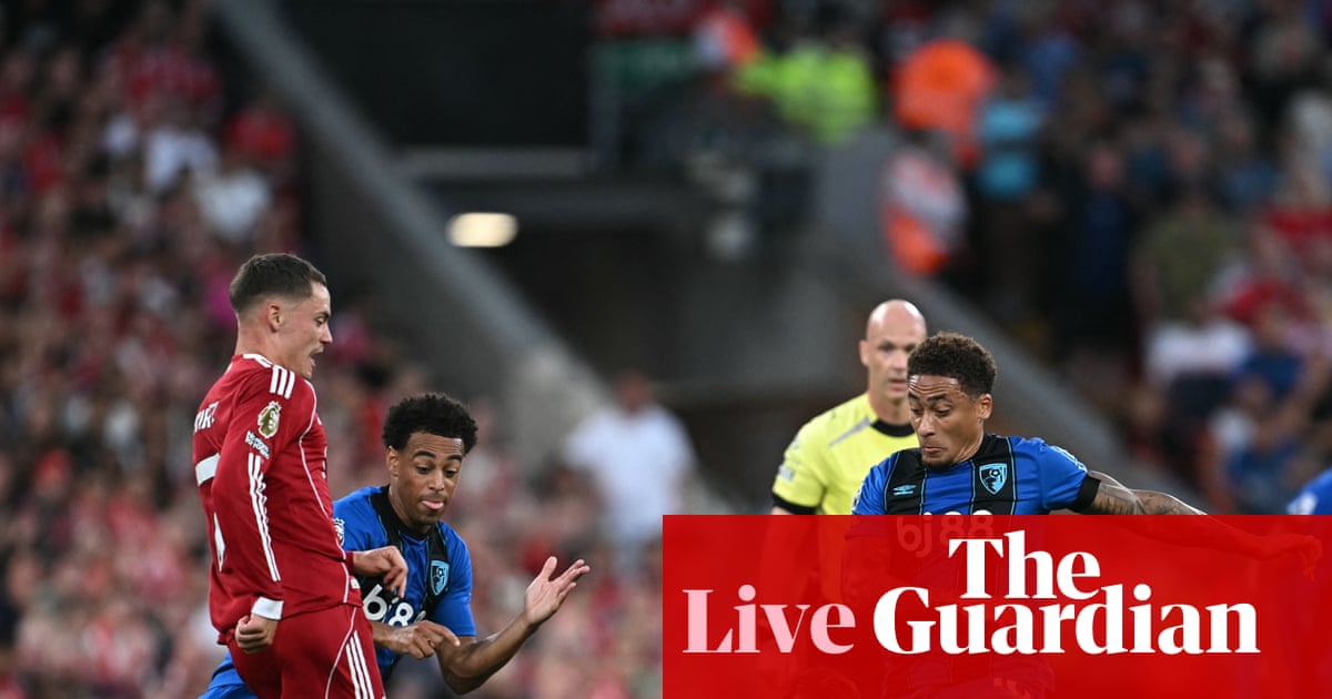 7 min: Truffert, the new Kerkez for Bournemouth, steams down the left, and curls low for Semenyo, who nips in ahead of the old Kerkez, Kerkez. He should score, really, or at least work Alisson, but leans back and hoicks into the Kop. It’s an open start.